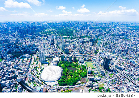 上空から見たさいたま新都心駅と大宮駅の市街地