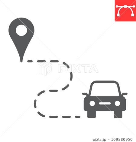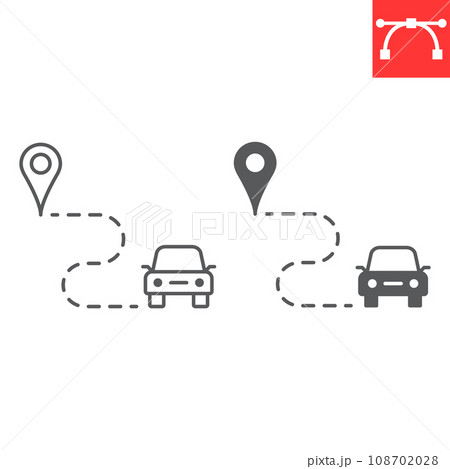 Car route line and glyph icon, navigation and transportation, car destination vector icon, vector graphics, editable stroke outline sign, eps 10.
