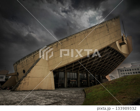 暗雲が立ち込める船の体育館 香川県高松市