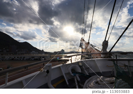 大型練習帆船海王丸の船内からバウスプリット
