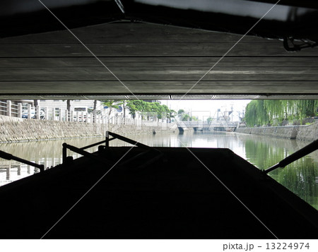松江市の幸橋の下を進む堀川遊覧船(ぐるっと松江堀川めぐり)