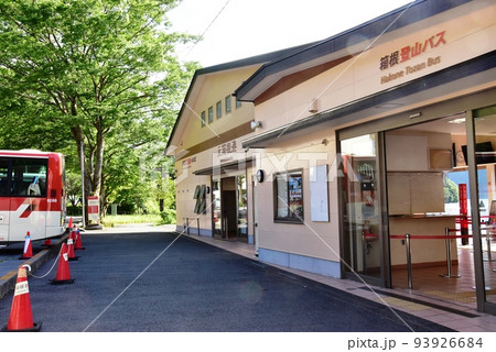 箱根町 芦ノ湖元箱根港海賊船のりばと箱根登山バスと新緑