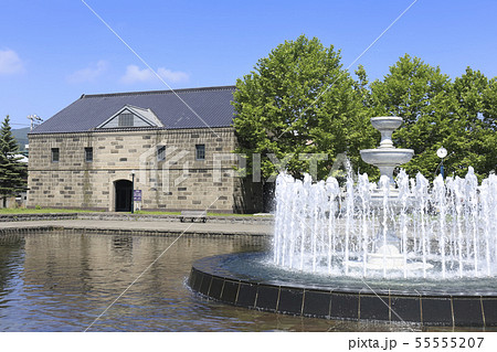 北海道 小樽 旧日本石油(株)倉庫と運河公園の噴水