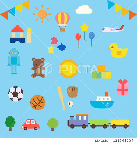 シンプルでかわいいおもちゃのイラストセット(フラットデザイン)