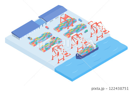 港のコンテナターミナルのアイソメトリックイラスト