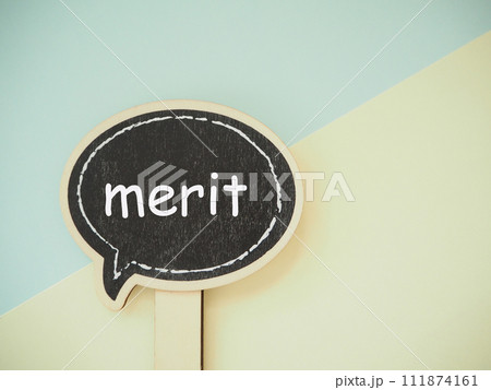 黒板にメリットmeritの単語、おしゃれなイメージ