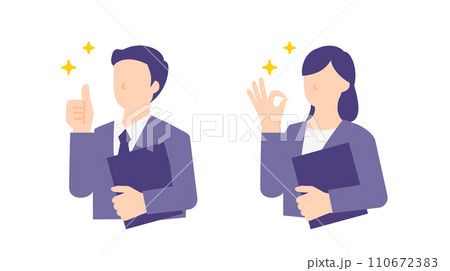 バインダーを持ちお客様にオッケーサインを出すビジネスパーソンのイラスト