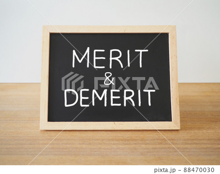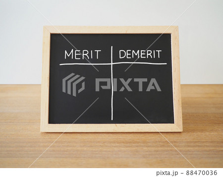 メリットデメリット(Merit &Demerit)とチョークで書かれた黒板