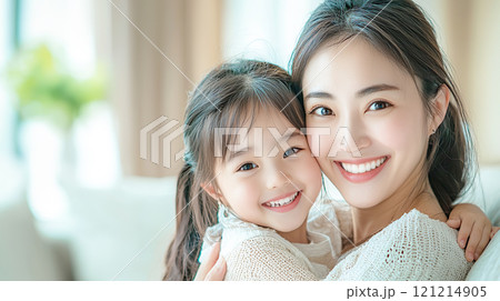 笑顔の母親と喜びに満ちた娘の間の優しい瞬間