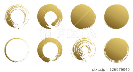 金色 ゴールド 和風 手書き 丸 円 セット ベクター