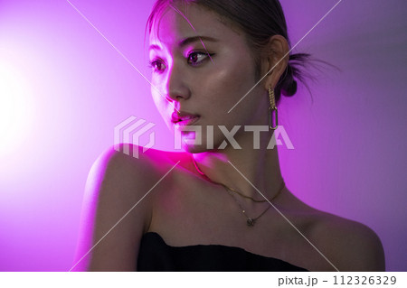 ライトを浴びる女性