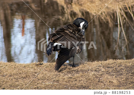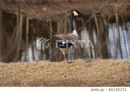 Goose next to river in spring