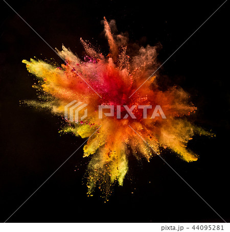Colored powder explosion isolated on black background.