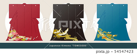留袖ベクターイラストセット(黒留袖・色留袖)