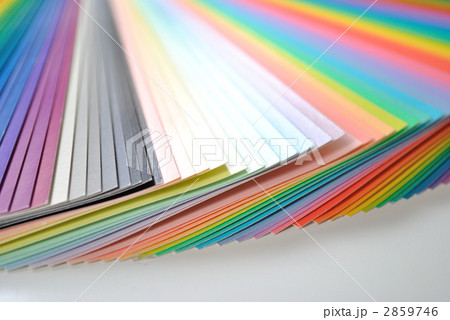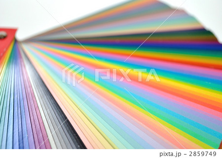 扇状に広げた沢山のカラーチャート。彩り、カラフル、デザイン、コーディネイト、イメージ