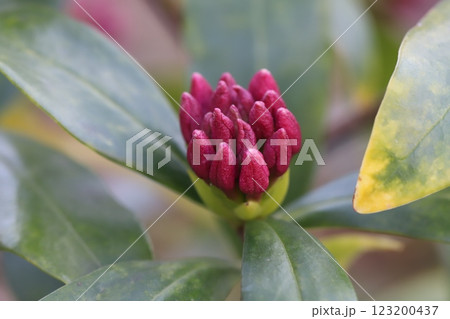 冬の庭に咲くジンチョウゲ(沈丁花)の赤い蕾の様子