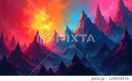 High contrast colorful abstract art, jagged forms with bright neon spectrum blen