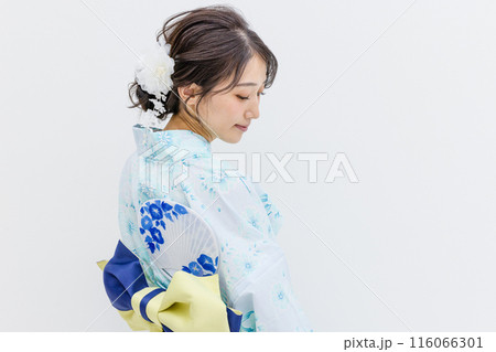 浴衣姿の若い女性 白バック