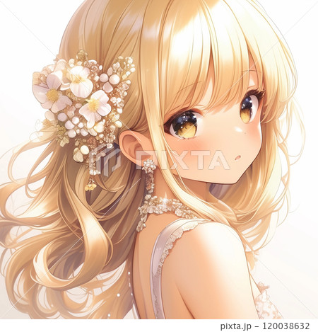 イラスト 赤い髪のドレスの美少女 シンプル背景