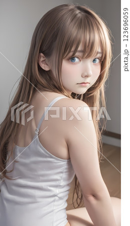 優しい光の中で、美白肌が輝く日本人女性の清潔感あふれるポートレート。