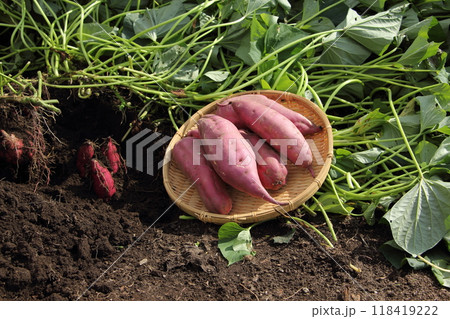 さつまいもの収穫 掘りたての薩摩芋 さつまいも畑 イメージ素材