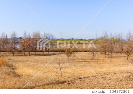 「埼玉県」見沼田んぼから見る、爽やかな秋空とさいたま新都心