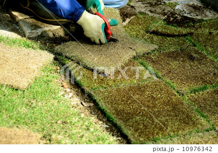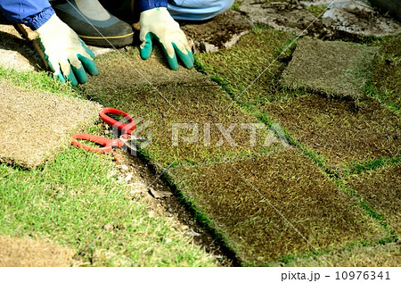 芝張り作業の画像素材(写真・イラスト) 1ページ目