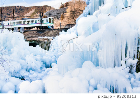 埼玉県横瀬町 あしがくぼの氷柱と西武電車