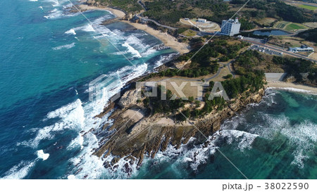 空撮画像:福岡県遠賀郡芦屋町の夏井ヶ浜はまゆう公園付近