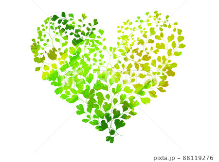 ハートの葉っぱ、アジアンタムで描いた緑のハート