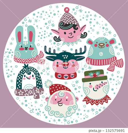 Charming Christmas Illustrations Featuring Elves Santa Animals Trucks and Festive Decor