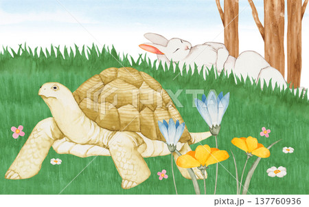 イソップ寓話 ver2 うさぎとかめ 水彩 イラスト