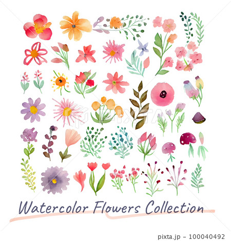イメージ素材:かわいい花の水彩画イラストセット