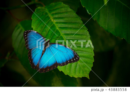 Blue morpho (morpho peleides) on green nature background.