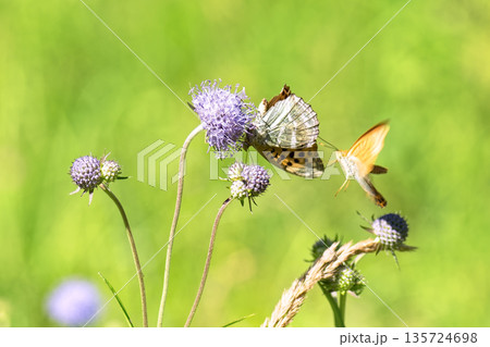 ミントの花の蜜を吸う蝶々 庭の植物