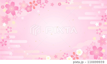 梅の花と鼓と雪や冬の花のイラスト紫背景素材