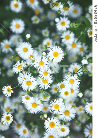 Beautiful blooming Summer meadow with chamomile flowers