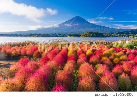 【山梨県】河口湖大石公園・紅葉したコキアと富士山