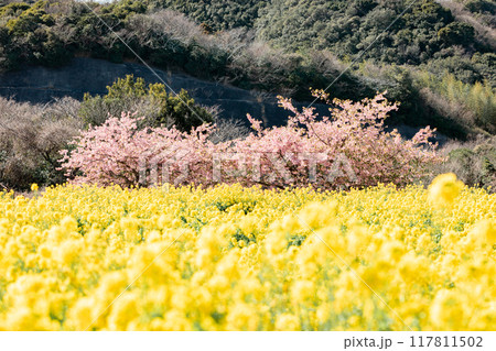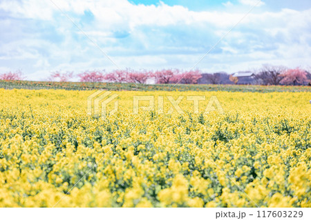 《南知多町》観光農園花ひろばの菜の花畑と河津桜