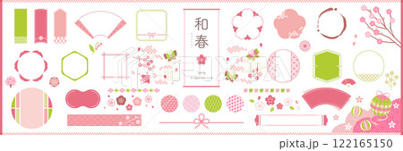 そのまま使える春のタイトルパーツ集。シンプルでかわいいピンクのフレーム。ベクターイラスト素材。