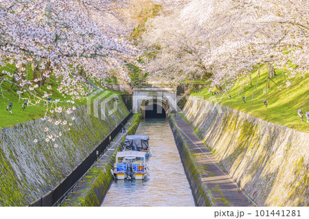 琵琶湖疏水 第1トンネル東口の満開の桜(滋賀県大津市三井寺町)