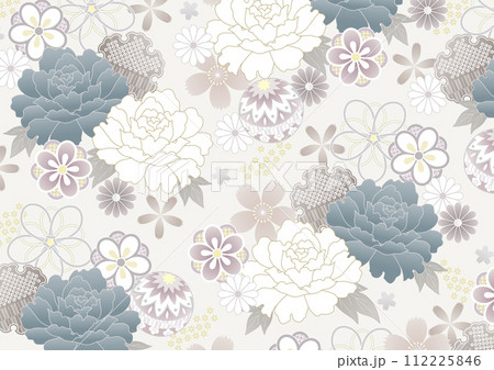 淡いくすみカラーのグレー系和柄(シームレスではありません)