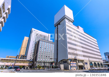 日本の横浜都市景観 桜木町駅前複合ビル・JR東日本ホテルメッツ横浜桜木町などを望む