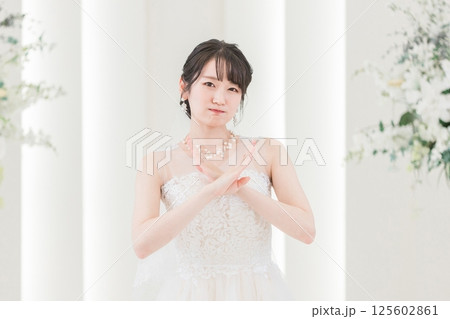 チャペルにいるウェディングドレス姿の花嫁,新婦