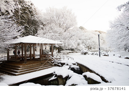 雪景色の朝の花島公園