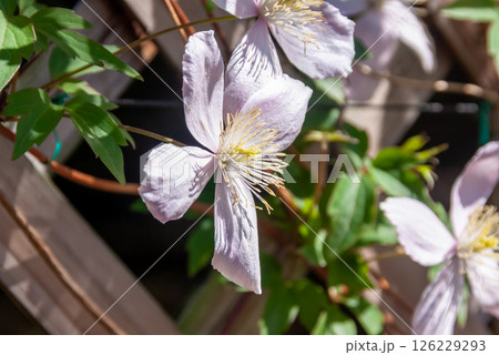 クレマチス モンタナ系、淡いピンクの花弁【中国原産】