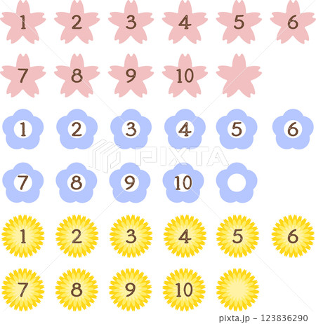 春の花の数字アイコンイラストセット