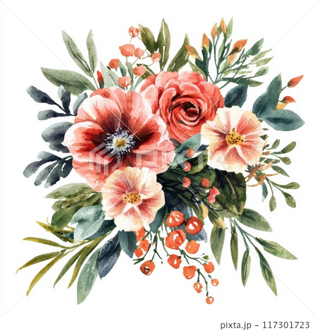 Watercolor Bouquet Composition Isolated on White Background Generative AI