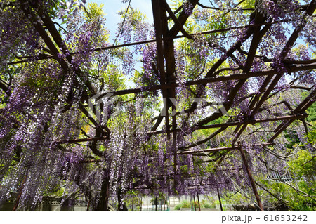 藤棚から伸びるかばんの藤
