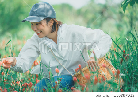 花農園 花摘み 女性